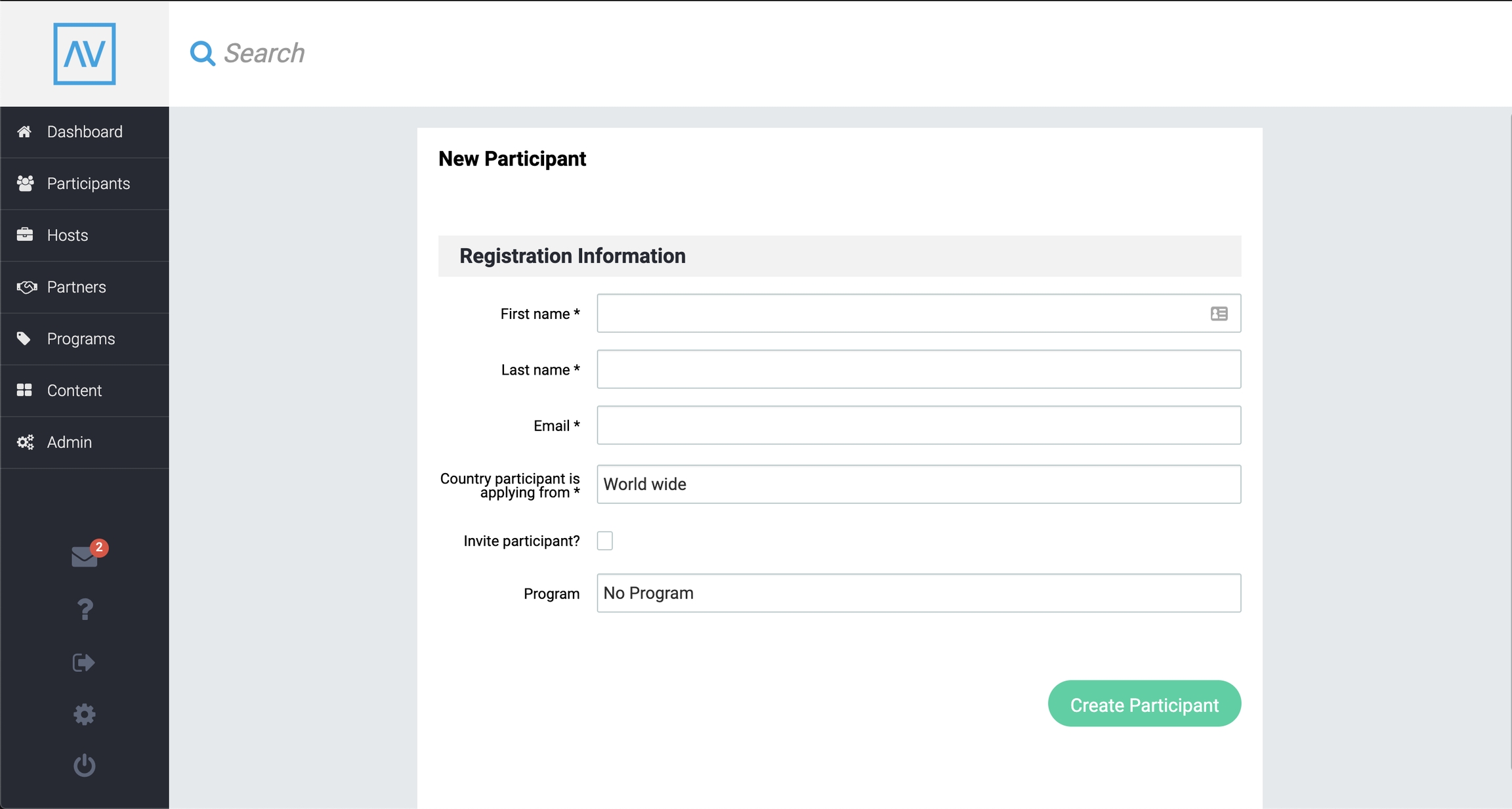 Click ‘Participants’ → ‘Create Participant’ → Enter your participant's details → Make sure to tick the ‘Invite this participant to the participant portal’ option* → Hit ‘Create Participant’.